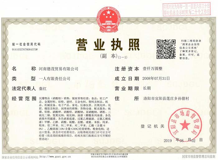 河南德茂貿易有限公司成立于2008年7月,是一家綜合型的貿易企業,注冊資金為1000萬元人民幣,是河南省前進化工科技集團股份有限公司的全資子公司。公司位于河南省宜陽縣城西9公里的陳宅村南,北有安虎線通過,交通便利,北面約1公里有洛河自東向西流過。該地區屬溫熱帶大陸性季風氣候,年平均氣溫14.4℃,最高氣溫43.7℃,最低氣溫...